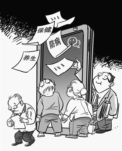 朋友圈里是否看到过爸妈发来的养生帖?眼下,注重养生保健的老年人越来越多,有的追看电视养生节目,有的买些中医保健书籍自己研究,或者转发朋友圈的养生帖。日前有报道称此类养生帖、养生书并不靠谱,一些内容自相矛盾,误导读者,部分微信养生贴为营销运作。