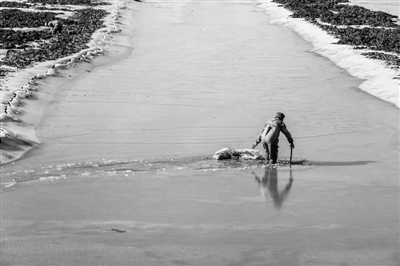 11月末到12月初是挖蛏人最为难过的一段时间。每天,他们都要在零下10摄氏度左右的气温中连续作业7小时。虽然挖蛏的手工费已经提升,但因作业难度大挖蛏数量少,最多的每天能挣400元左右,最少的仅百元左右,能够坚持下来的挖蛏人少之又少。