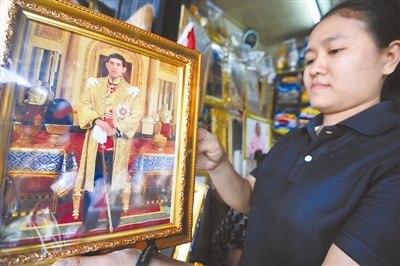 11月30日,在泰国曼谷一家纪念品商店内,店员展示哇集拉隆功王储肖像。