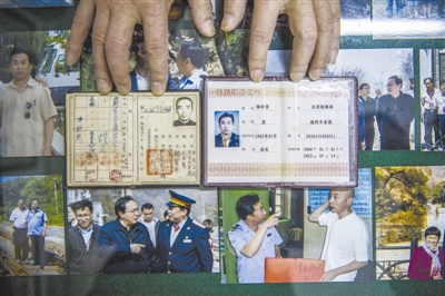 杨存信和父亲杨宝华的工作证,两张工作证记录了杨家父子在青龙桥站坚守65年的历史。