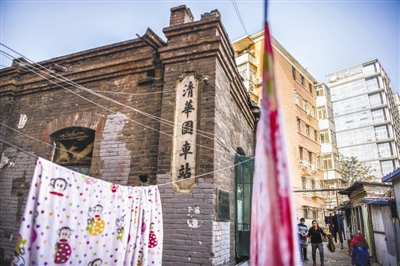 其实,此处清华园站还算幸运。就在这小站西北方向不远处,还有另外一个更老旧的(原)“清华园车站”,站名为詹天佑亲笔题写,它藏匿于各式屋棚楼宇间,现在仅剩一座低矮的青砖建筑,在这个标有“北京文物”的建筑里,住着一户卖早点的四口之家,卖完早点之后,他们还要抽出时间“接待”近日突然增多的参观者。
