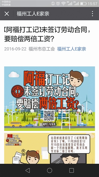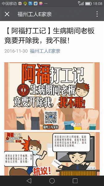 福州工人E家亲上刊登职工维权案例