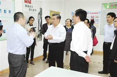 江西省人大常委会副主任、省总工会主席谢亦森(右三)在基层工会调研