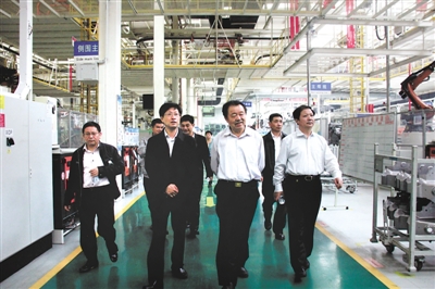 江西省人大常委会副主任、省总工会主席谢亦森(前排右二)在企业调研工会工作