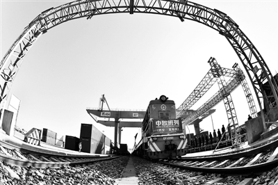 当日,首趟西安至莫斯科中欧班列从西安新筑车站正式发车,这趟班列共载有41个集装箱,货品包括机械电子设备、服装等。该班列从新疆阿拉山口出境,途经哈萨克斯坦到达莫斯科,全程7423公里,计划开行11天左右,相比海运节省约30天。 新华社发(唐振江 摄)