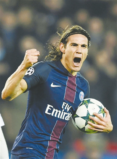 12月6日,巴黎圣日耳曼队球员卡瓦尼在比赛中庆祝进球。