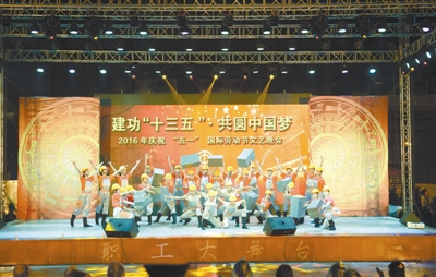 南宁市工人文化宫经过五年建设面向社会开放,图为“职工大舞台”上职工参加“建功‘十三五’·共圆中国梦”演出