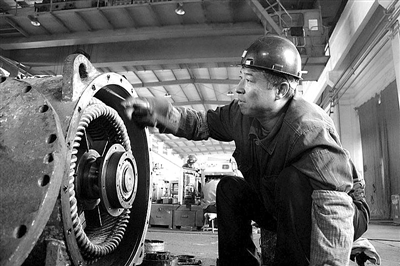 图为12月7日,该公司维修工邢立峰正在维修该款刮板输送机电机轴承。张继涛 孟帅