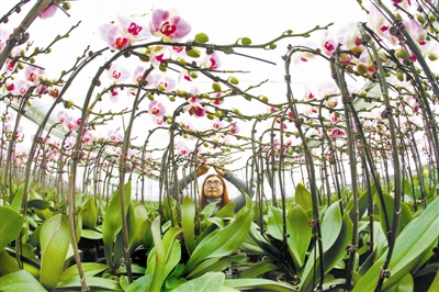 12月12日,张家口市流平寺村蝴蝶兰基地的工人在给蝴蝶兰花做造型。寒冬季节,河北张家口市流平寺村4000平方米的智能化温室大棚内暖意融融,20多个品种的各色蝴蝶兰竞相开放,吸引北京、天津等地的客户前来订购。新华社记者 杨世尧 摄