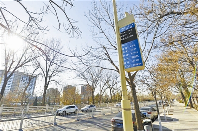 12月14日,北京左安门西街的新型复合路灯杆监控屏上显示着各种数据信息。