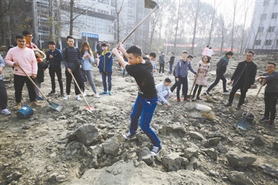 12月13日,四川成都,随着课间铃声一响,四川大学锦城学院的学生们便来到了学校农场边,这次他们的课程不是测量而是种田。在农场的学生们排队领取锄头、镰刀等农具,学习锄地、割草、种菜苗、浇水。