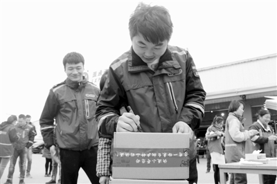 12月11日,上海,桐庐县钟山乡党委政府利用休息时间,派出党员服务小分队,赴上海开展“红色之履”走近快递小哥活动,为申通、圆通、中通、韵达和快捷五家快递公司的部分员工烹煮家乡美食,赠送家乡土特产,快递小哥们则开心地签字收下快递。
