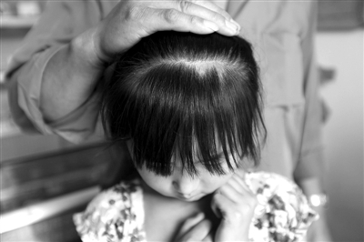 3年前,一位名叫嘟嘟(化名)的小女孩在幼儿园被老师揪掉的头发至今没长出来。视觉中国供图