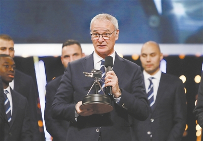 12月18日,英超莱斯特城队主教练拉涅利在获颁最佳教练奖后致辞。