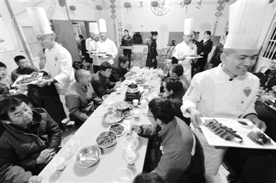 12月20日,在合肥市庐阳区四里河街道的建筑工地,一家餐饮公司的党支部联合当地在建项目红色e站,开展“徽菜大师进工地,辞旧迎新送祝福”活动,现场徽菜大师展示徽菜技艺,提前为农民工兄弟送祝福。