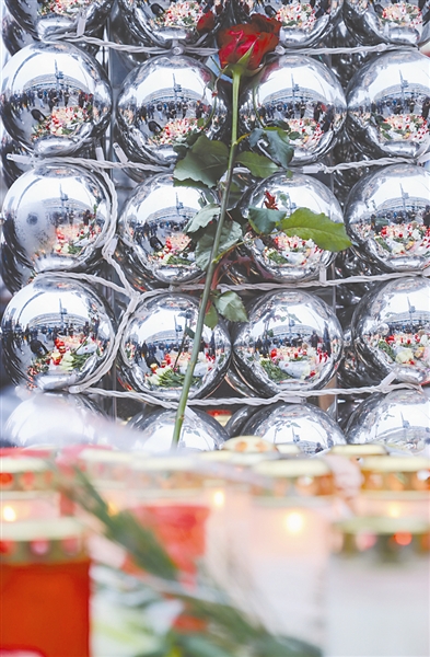 12月20日,在德国首都柏林圣诞集市袭击案事发地点附近,人们放置玫瑰和蜡烛悼念遇难者。当日,柏林多地举行活动悼念圣诞集市袭击案遇难者。