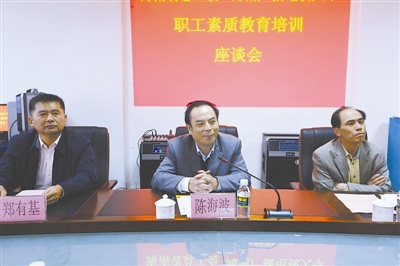 海南省人大常委会副主任、省总工会主席陈海波在职工素质教育培训座谈会上对“农民工求学圆梦行动”进行部署