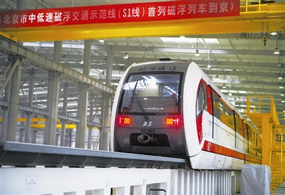 北京市中低速磁浮交通示范线(S1线)首列磁浮列车到京