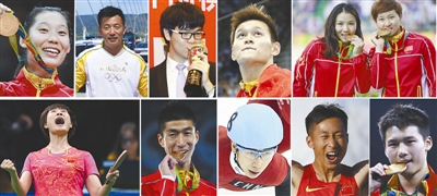 12月26日,新华社体育部评出2016年中国十佳运动员(11名运动员)如下:上排从左至右:1.朱婷(女,排球);2.郭川(男,帆船);3.柯洁(男,围棋);4.孙杨(男,游泳);5.钟天使(右)/宫金杰(女,自行车);下排从左至右:6.丁宁(女,乒乓球);7.赵帅(男,跆拳道);8.韩天宇(男,短道速滑);9.王镇(男,田径);10.陈艾森(男,跳水)。 新华社发