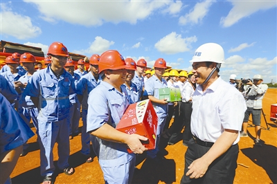 海南省人大常委会副主任 、 省总工会主席陈海波 “ 送清凉 ” 慰问高温作业一线职工