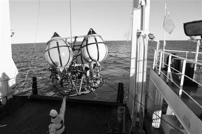 2016年12月31日,科考队员将高压气枪投入海水之中测量海底地层结构。
