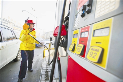 1月1日,山西太原,加油站工作人员正在给车辆加油。