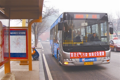 山西临汾遭遇雾霾天 数百辆公交免费开放