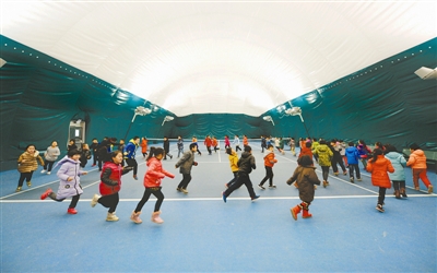 当日,河北石家庄持续雾霾天气。石家庄华兴小学誉兴校区启用气膜体育馆,同学们可以在馆内正常上体育课。据了解,气膜体育馆长50米,宽20米,设有送风口、排风口及空气过滤系统,并可按需控制馆内温湿度、空气质量、照明。