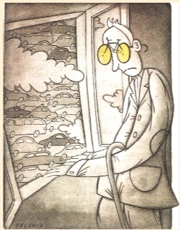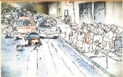 机动车无序增长既造成交通堵塞和混乱,又带来了环境污染的诸多麻烦。人们怀念绿色单车之时还欣赏了画家精巧构思。