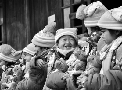 当日,贵州从江生态文化社的志愿者来到从江县停洞镇摆也小学,为山里的孩子们发放包括棉衣、帽子、手套等物品,让孩子们在寒冬时节感受温暖。刘朝富 摄(新华社发)
