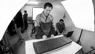 1月6日,技术人员在准备扫描和拍摄原版的《清敕修大藏经》木雕经板。