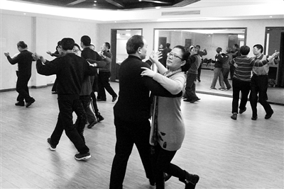 1月5日,杭州市工人业余大学的交谊舞教室,20名老年学员翩翩起舞。