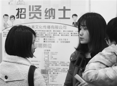 当日,上海市2017年应届高校毕业生首场招聘会在上海世贸商城举行。约500家用人单位提供了万余个岗位,涵盖金融业、制造业、计算机与软件业等多个领域,吸引了多所高校的毕业生前来求职。新华社记者 丁汀 摄