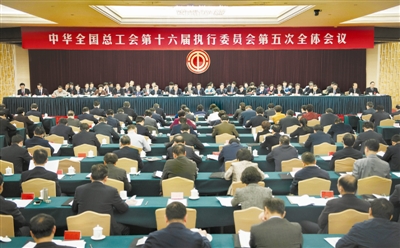 1月16日至17日,中华全国总工会第十六届执行委员会第五次全体会议在京召开。图为会议现场。