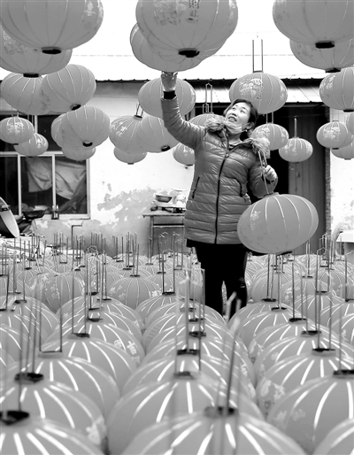 1月16日,山西稷山县杨赵灯笼产业园内,一工人在赶制大红灯笼。随着春节的临近,山西省运城市稷山县杨赵村迎来了灯笼的销售黄金季。当地村民在继承传统制作工艺的基础上,不断创新灯笼设计,增加灯笼品种,加工的灯笼畅销全国20多个省区市,形成了原材料经营、灯笼制作、销售、运输的产供销一条龙产业链。据了解,杨赵村的灯笼制作历史悠久,距今已有800多年的历史,年产灯笼达300多万对以上,灯笼加工已成为当地农民致富的品牌文化产业。卫行智 摄/视觉中国