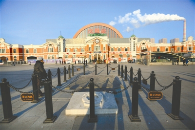 1月16日,辽宁省沈阳市,一座烟囱冒出的白烟随风飘向沈阳站。