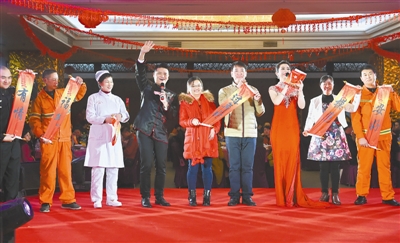 1月21日,劳动模范、工人先锋号代表等给建设者代表送祝福。