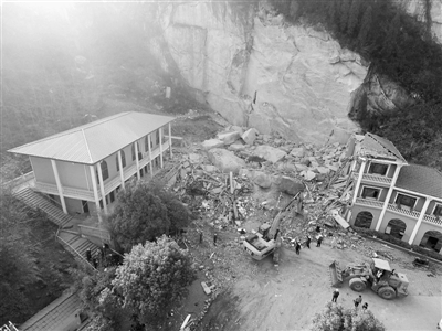 记者从南漳山体崩塌灾难救援指挥部获悉,经用生命探测仪和搜救犬反复搜寻,灾难现场已无生命迹象。据当地政府部门初步统计,事发时有15人被困。截至目前,营救出的5人中2人医治无效身亡。熊琦 摄(新华社发)
