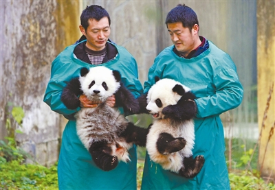 当日,2016年7月出生的大熊猫双胞胎大双与小双在重庆动物园正式与游客见面。饲养员将它们抱到室外运动场,第一次面对众多观众,大双与小双毫不怯场,憨态可掬、耍宝卖萌。