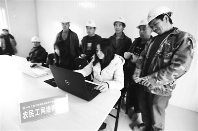为确保协作人员在项目放假前全部买到回家的车票,项目部专门选派了2名工作人员利用工作间隙为协作人员网上购票。蔡祥重 摄
