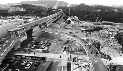1月20日,福建厦门,航拍空中自行车道入口处,全国首条空中自行车道春节前建成即将通车。据了解,厦门空中自行车道全长约7.6公里,为市民的绿色出行提供方便。视觉中国 供图