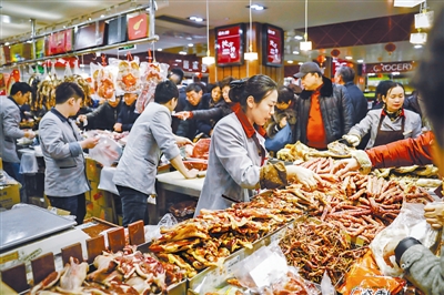 1月22日,上海,民众在市场购买年货。春节即将来临,上海年货市场供应充足,一片红火。