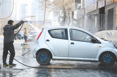 春节临近,不少车主在节前都会对爱车进行清洗、保养维修和美容,山东济南的多家洗车店出现价格集体上涨,涨价在单次10元到20元不等,有的甚至涨到每次50元。其中,一家洗车店由于店里的工作人员放假回家,洗车缺少人手,店主便和父母一起全家上阵,老人代替工作人员动手洗车。视觉中国 供图