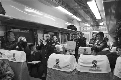 丹东铁路公安处抽调16名青年文艺骨干组成了春运文艺小分队,为旅客送欢乐。(刘嘉辰 贾勇)