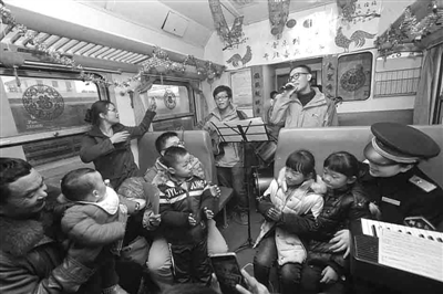 1月19日,南昌铁路局南昌通信段的90后在列车上举办了一场小年“音乐会”。(高晓珲 陆逸)