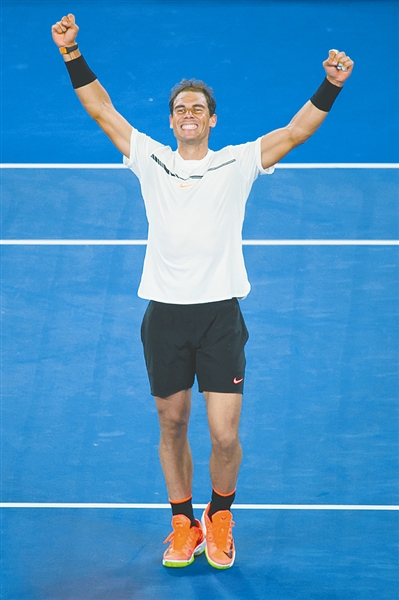 1月25日,西班牙选手纳达尔庆祝胜利。