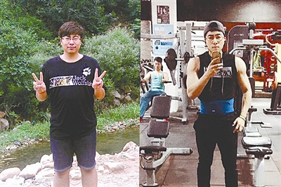 《胖子都是“潜力股”》 1月25日的我(图右)。我以前是个190斤的胖子(图左),是坚持健身改变了我!这,就是我的幸福!国欣 摄