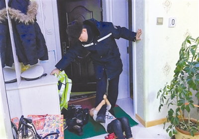 《爸爸,别走》 1月26日,在新疆伊犁巩留县交警大队三中队中队长范伟家,儿子抱着范伟的腿不让他走。当天下午局里开完大会后,一个月没回家的范伟回家换了套衣服,就准备赶回巩尼公路交通服务站,孩子在看到爸爸回来换个衣服就要走,就躺在地上使劲抱着爸爸的腿,不让爸爸走…… 叶璐 摄