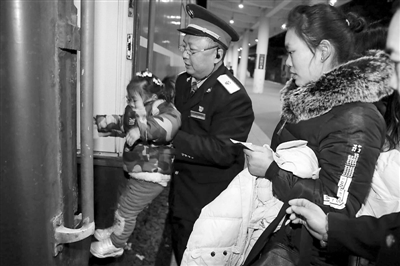 K1165/4次列车是山西上党地区开往北京唯一的一趟列车,常年客流大。担当该趟列车任务的郑州铁路局郑州客运段践行“以服务为宗旨,待旅客如亲人”的工作理念,受到旅客好评。1月30日,该列车乘务员李建军帮助旅客上车。