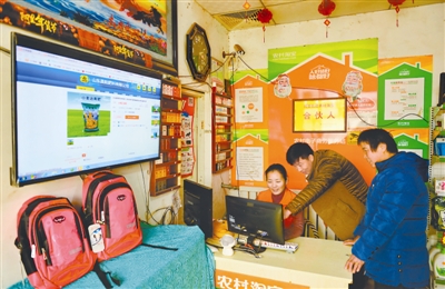 2月5日,农民在南宫市南旧城电子商务服务站网购化肥。
